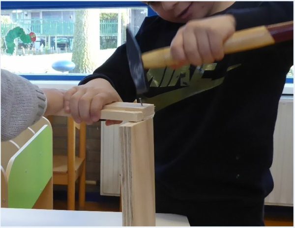 Hamertje tik!! Hier ga je echt leren timmeren in stukjes hout met hamers, lijmen met echte houtlijm en versieren met touwtjes, knoopjes, stofjes, verf etc. Zo maak je kleine leuke werkstukjes zoals een lief girafje, een gek mannetje of een hip robotje.