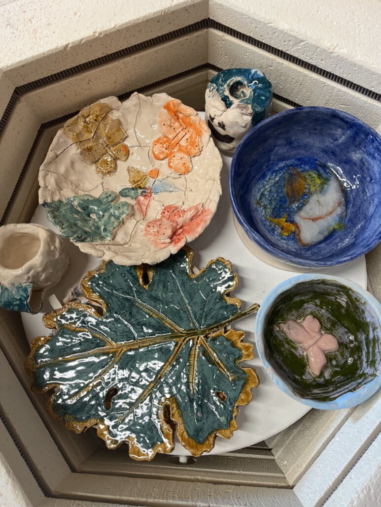 Je kunt denken aan het handvormen van borden, bekers, een vaas opbouwen met rollen, afdrukken in klei, het gebruiken van mallen of het boetseren vanuit je verbeelding of een voorbeeld. Vervolgens gaan we aan de slag met kleuren en glazuren en worden de werkjes voor jou afgebakken.